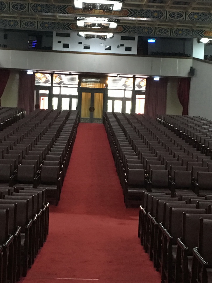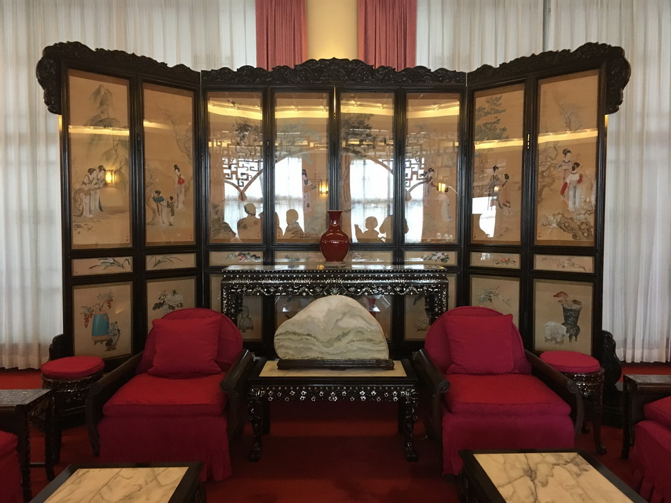 所以,我們在館內除了看到精緻典雅的布置、黃君璧等名家的字畫外,還有一座可容納1,800人的會議廳與另一座可容納1,500人的餐廳。想像當年老國代們在此開會、用餐的情景,如今已是人去樓空,歷史也被翻過了好幾個篇章,讓人不勝唏噓。我那幾位北京友人,表情更是怪異得讓人難以參透。