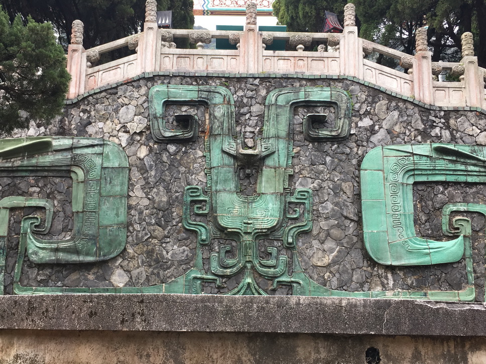 我們從刻有「大道之行」牌樓上山,由另一側刻著「天下為公」的牌樓下來,看到中間的噴水池有楊英風設計的古龍浮雕,感覺傳統的一些概念與圖像總是非常美好,跟山下的紅塵世界有很大的差距。