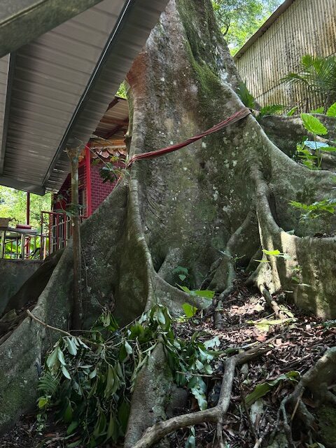 老榕樹的巨大板根與茂盛樹幅難得一見,可惜因為廟體與遮棚的掩蓋,而讓人難以無礙地一窺全貌,這是它美中不足的地方。