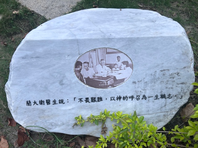 公園裡還有八塊鑲有蘭大衛夫婦照片與蘭大衛醫師一句名言的大理石作品,諸如「不管我們能力如何,都應該盡其所能」、「把病人的艱苦當作自己的艱苦,用虔誠的心祈禱」、「我期待自己成為一位喜愛人與受人們喜愛的人,更甚於成為一位傑出的醫師」、「藉著人生無數的抉擇,型塑自己的人格」等等,都是值得我們深思且奉為人生指南的。